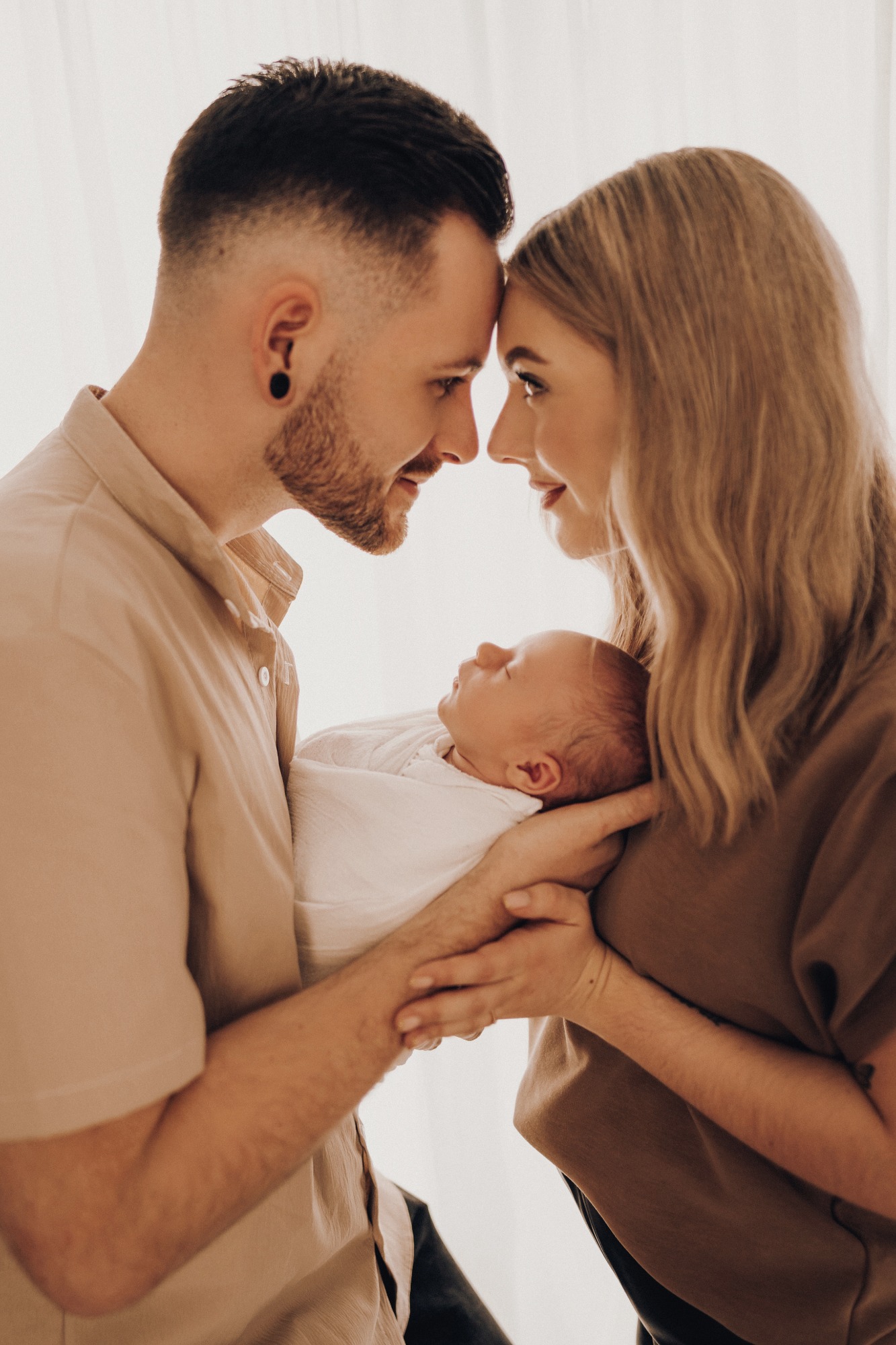 Für natürliche und zeitlose Bilder empfehle ich Erdtöne und schlichte Kleidung. Bitte vermeidet große Logos oder auffällige Muster, da sie von euch und den Emotionen ablenken können. Ich berate euch gerne in einem persönlichen Vorgespräch und gebe euch Tipps für die Outfitwahl. Und in meinem Studio habe ich eine kleine Auswahl an Outfits und Kleidern, die ihr gerne nutzen könnt-auch perfekt für Babybauch und Familienfotos.